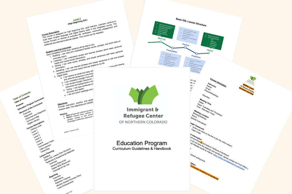 Early in 2022, I began working with the Immigrant & Refugee Center of Northern Colorado (IRCNOC) on a project to recreate their Individual Growth Plans (IGPs) for students. In order to create growth plans, the organization’s curriculum needed to be realigned with adult education standards/frameworks and created with a cohesive design allowing for transparency, teaching support, and data collection.